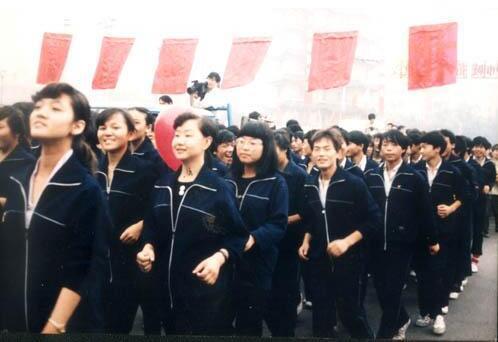 學(xué)校的學(xué)生隊伍照片。