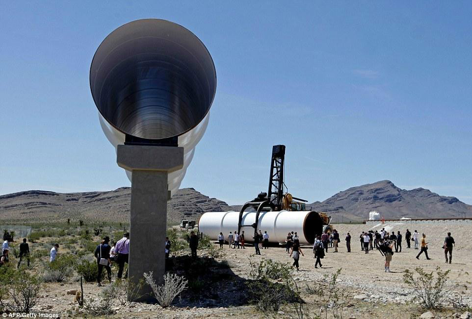 圖為Hyperloop One公司超級(jí)高鐵模型遠(yuǎn)景,他們正在與另一家公司競(jìng)爭(zhēng),爭(zhēng)取首先開發(fā)出改變?nèi)藗兩畹某咚倭熊嚒?/p>