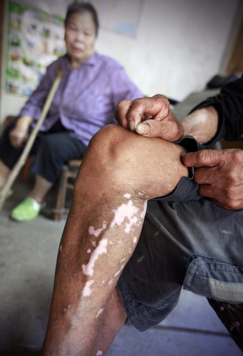 當(dāng)了多年的漁民模特,整天也水打交道。黃全德說(shuō),他的腳已脫了三層皮。