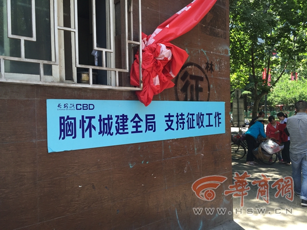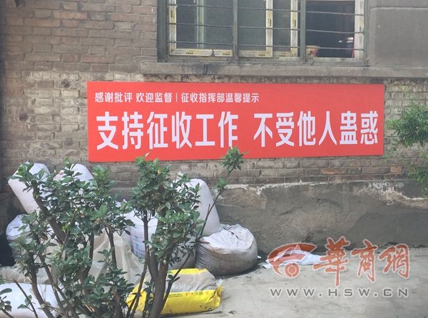 華商網(wǎng)訊 “支持征收工作、不做過街老鼠?!笨吹竭@樣的拆遷標(biāo)語,您會作何感想?近日,這樣的標(biāo)語出現(xiàn)在雁塔區(qū)糧食局的家屬院內(nèi),而這則標(biāo)語的懸掛者,則是紅會醫(yī)院西側(cè)棚戶區(qū)改造項目征收指揮部。對于為何懸掛這樣的標(biāo)語,該指揮部一位負責(zé)人稱,部分住戶為達個人目的煽動群眾,抵抗拆遷,而為提醒其他群眾不受蒙蔽、蠱惑,制作了這條橫幅。目前,標(biāo)語已經(jīng)被替換。