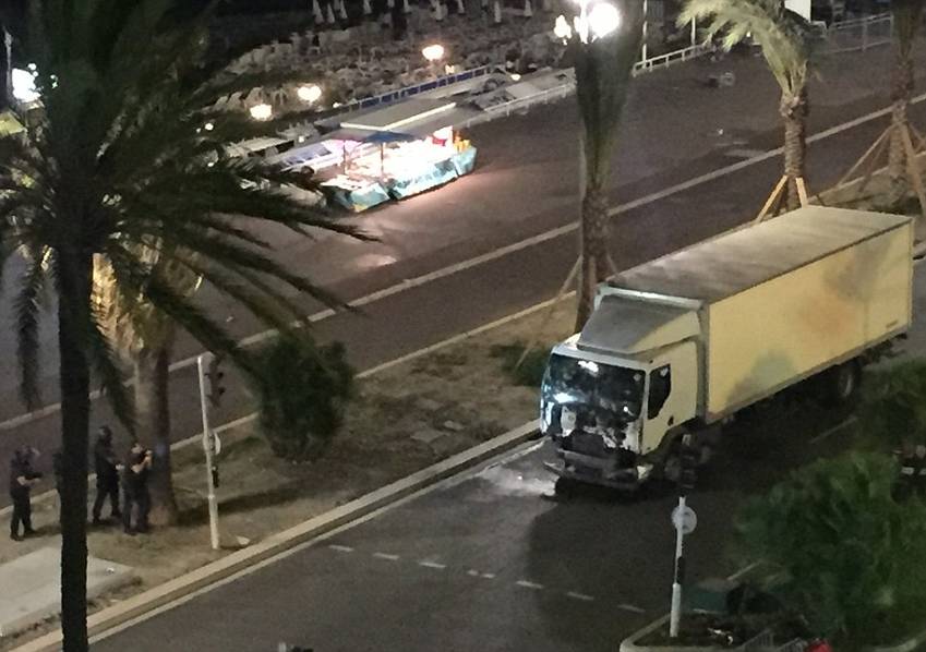 當(dāng)時人們正在當(dāng)?shù)乜礋熁鸨硌荩稚隙际怯稳?,一輛貨車以每小時60-70公里的速度沖向人群。據(jù)現(xiàn)場目擊者稱,期間還聽見數(shù)聲槍聲。