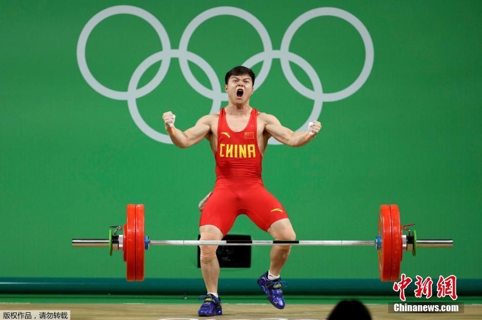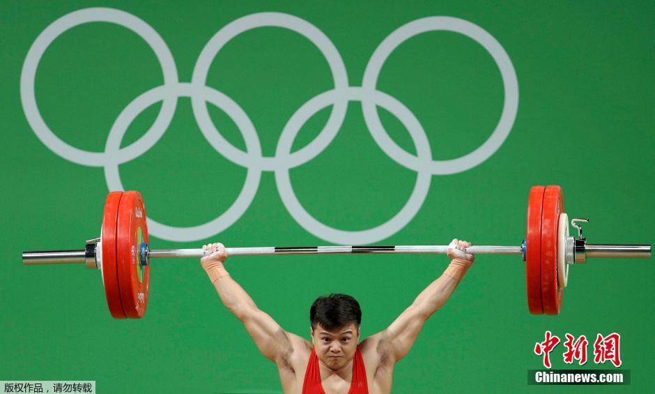當?shù)貢r間8月7日,里約奧運會男子舉重56公斤級比賽舉行,北京奧運會該項目冠軍中國選手龍清泉破世界紀錄再次摘金,為中國代表團再添一枚金牌。圖為龍清泉在抓舉比賽中。