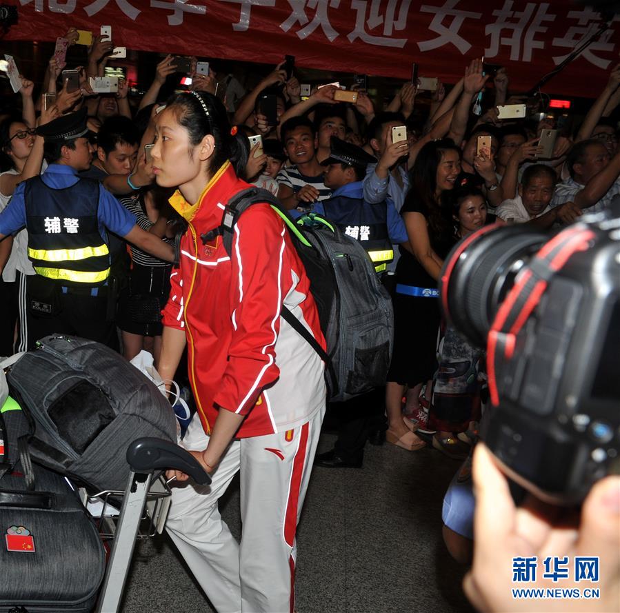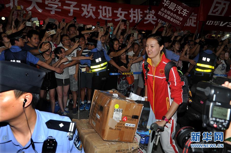 8月23日,中國女排隊員朱婷抵達北京首都國際機場。當晚,在里約奧運會獲得金牌的中國女排回國。 新華社記者陳曉偉攝