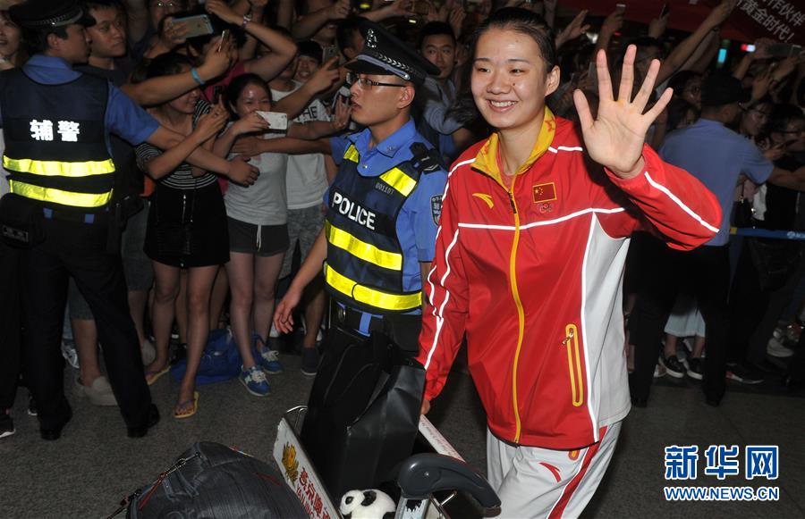 8月23日,中國女排隊員袁心玥抵達北京首都國際機場。當晚,在里約奧運會獲得金牌的中國女排回國。 新華社記者陳建力攝