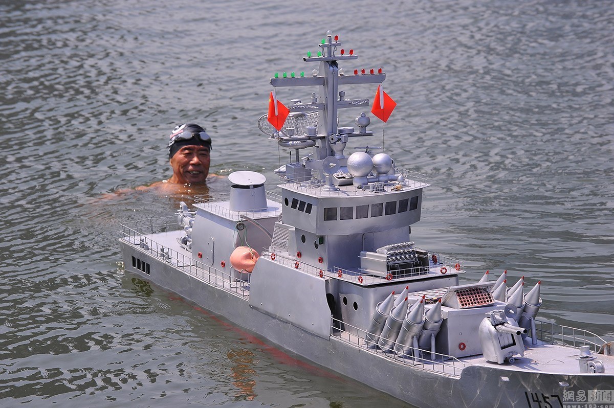 十幾年來(lái),他先后成功的造出了“導(dǎo)彈驅(qū)逐艦”2艘,“巡洋艦”4艘,“導(dǎo)彈護(hù)衛(wèi)艦”1艘。2014年12月13日,郭長(zhǎng)海將半年時(shí)間打造的新作“導(dǎo)彈護(hù)衛(wèi)艦”拉到村里的大街上向村民展示,這艏長(zhǎng)3.07米,高1.2米,寬約0.8米的“導(dǎo)彈護(hù)衛(wèi)艦”在他的遙控指揮下,成功實(shí)現(xiàn)了陸地上的前進(jìn)、后退、左右拐彎,并可模擬槍炮發(fā)射火藥的效果。為了驗(yàn)證水上功夫,2015年8月13日,郭長(zhǎng)海在日照奧林匹克水上公園龍舟碼頭,為“導(dǎo)彈護(hù)衛(wèi)艦”進(jìn)行試航,經(jīng)過(guò)半個(gè)多小時(shí)的調(diào)試,最終試航成功。連續(xù)兩年在眾人面前的試驗(yàn),均獲得成功,這大大增強(qiáng)了他的信心。