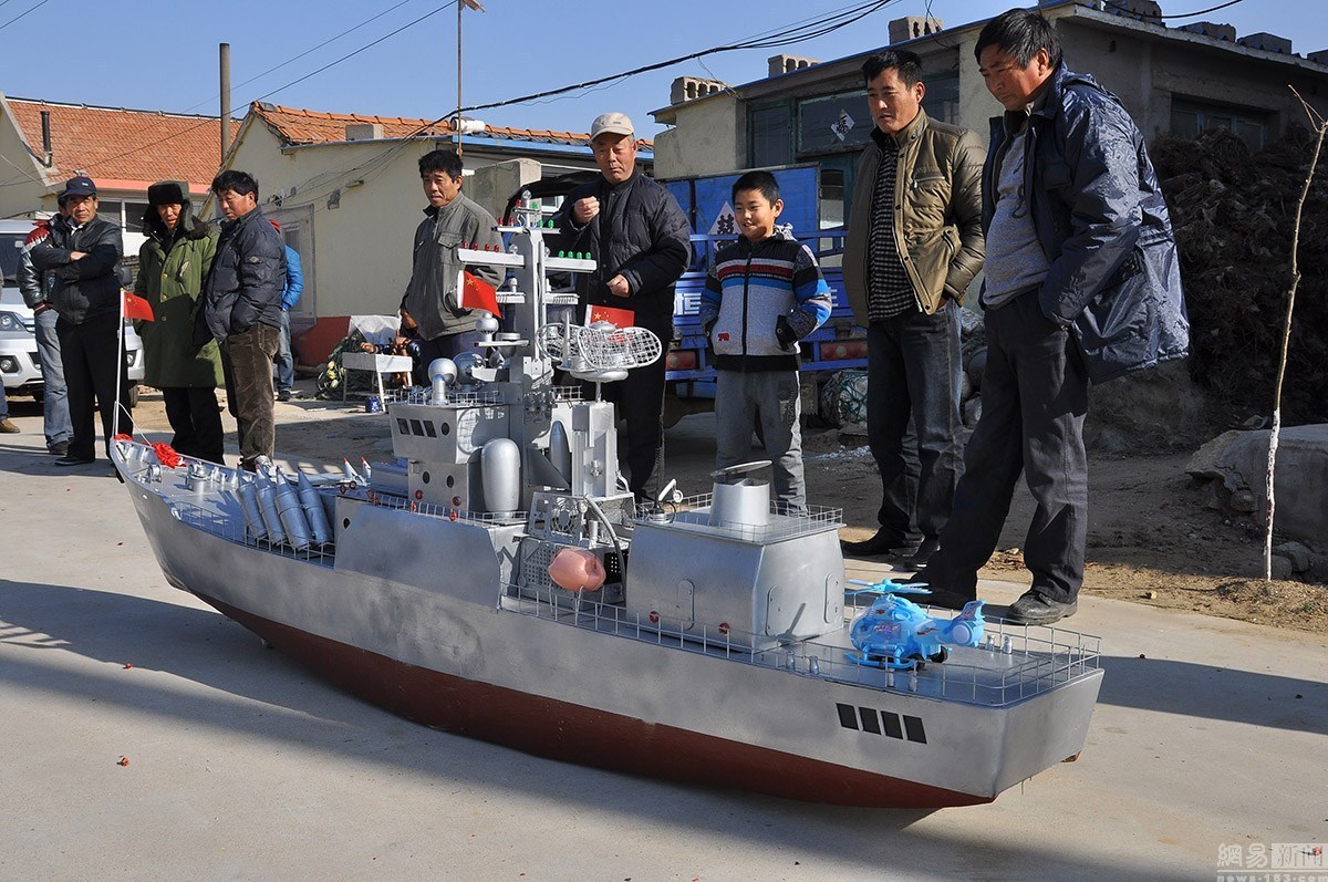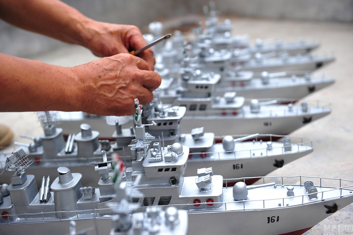 郭長(zhǎng)海,初小文化,當(dāng)過(guò)27年的船長(zhǎng)。2005年,迫于海洋漁業(yè)的枯竭,他將漁船賣(mài)掉。但是仍然割舍不了對(duì)大海的依戀之情。平時(shí),他喜歡從電視上了解國(guó)家大事,最?lèi)?ài)看軍事頻道,耳濡目染,于是對(duì)軍艦產(chǎn)生了濃厚的興趣。農(nóng)閑的時(shí)候,郭長(zhǎng)海便琢磨起了艦艇模型的制作。