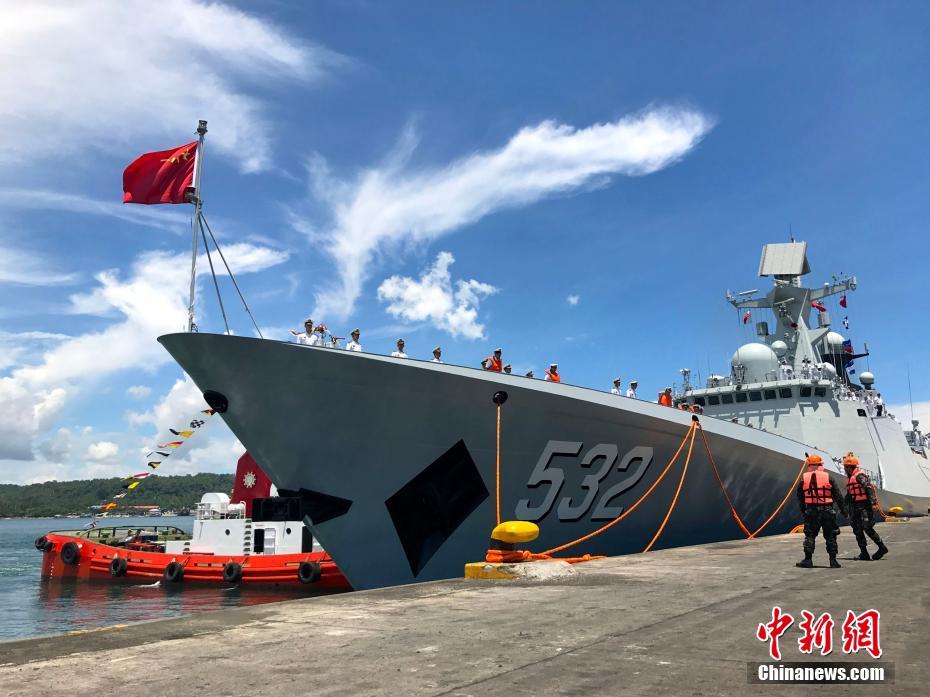 4月30日,由導彈驅逐艦長春艦、導彈護衛(wèi)艦荊州艦和綜合補給艦巢湖艦組成的中國海軍艦艇編隊抵達菲律賓南部達沃市訪問,受到熱烈歡迎。這支艦艇編隊4月23日從上海黃浦江畔啟航,將赴亞洲、歐洲、非洲和大洋洲20余個國家進行友好訪問,菲律賓是首站。圖為荊州艦靠岸。 中新社記者 張明 攝