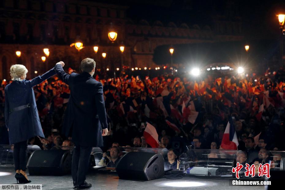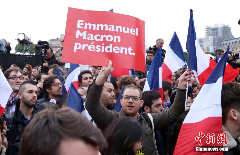 巴黎時間5月7日晚,法國總統(tǒng)選舉第二輪投票初步計(jì)票結(jié)果顯示,中間派獨(dú)立候選人、“前進(jìn)”運(yùn)動領(lǐng)導(dǎo)人埃馬紐埃爾·馬克龍以大幅優(yōu)勢擊敗極右翼政黨“國民陣線”候選人馬麗娜·勒龐。年僅39歲的馬克龍由此成為法國史上最年輕的總統(tǒng),也成為世界上最年輕的大國領(lǐng)導(dǎo)人。圖為馬克龍的支持者在得知馬克龍當(dāng)選后歡呼。中新社記者 龍劍武 攝
