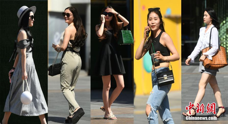 5月17日,觀音橋步行街上美女著涼裝出行。據(jù)中央氣象臺(tái)消息,17日-19日,北方多地將遭遇今年以來(lái)首次大范圍高溫天氣,涉及京津冀、內(nèi)蒙古等7省市區(qū),其中18日高溫范圍最廣、強(qiáng)度最大,內(nèi)蒙古東部偏南地區(qū)局地更有可能出現(xiàn)38-40℃的最高氣溫。(拼圖照片)中新社記者 陳超 攝