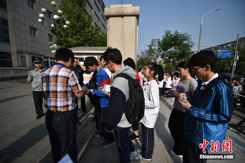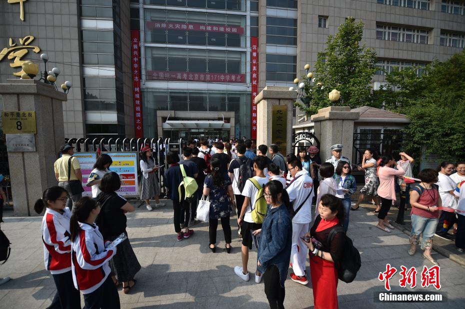 6月7日,2017年高考大幕正式拉開(kāi),全國(guó)將有940萬(wàn)考生參加考試。今年可謂是高考?xì)v史上的特殊年份,一方面,今年是高考恢復(fù)40周年,另一方面,今年也被稱為“新高考元年”,高考綜合改革試點(diǎn)地區(qū)的考生將迎來(lái)首次“新高考”。圖為北京市171中學(xué)考點(diǎn)的考生陸續(xù)進(jìn)入考場(chǎng)。中新網(wǎng)記者 金碩 攝