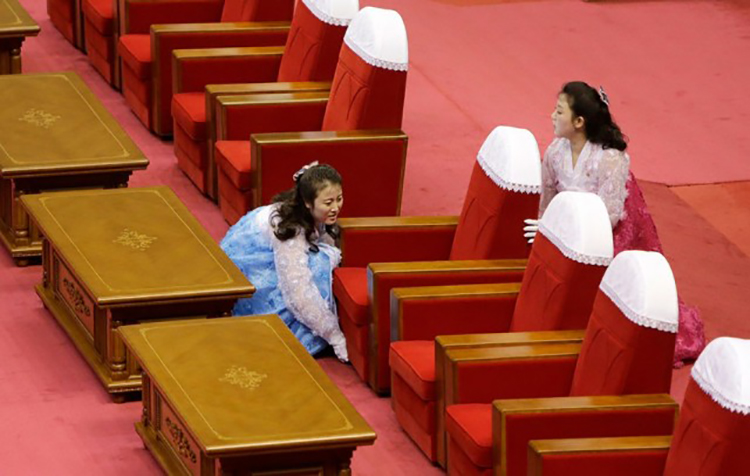 看完了朝鮮空姐,你想知道朝鮮其他職業(yè)女性是什么樣子的嗎?也許是因?yàn)橛跋褓Y料較少,也許是因?yàn)閭餮蕴婊谩3r,在很多人眼里擁有一絲神秘的色彩。路透社這一系列肖像作品以拍攝朝鮮職業(yè)女性為切入點(diǎn)。攝影師克服重重阻難,盡力為我們記錄朝鮮女性真實(shí)的工作狀態(tài)。兩位女士在調(diào)整朝鮮最高領(lǐng)導(dǎo)人和客人的座椅。