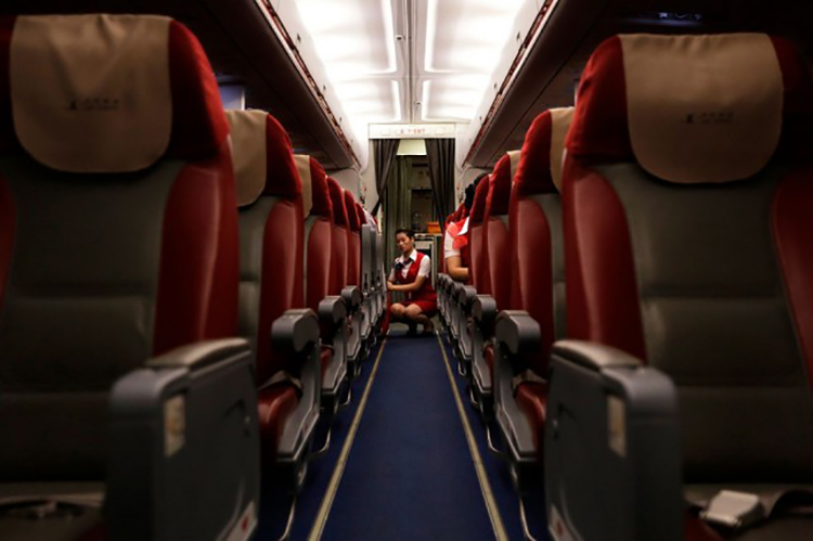 朝鮮高麗航空的空姐正在查看從北京飛到平壤的飛機(jī)。