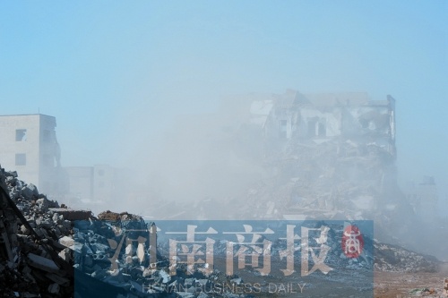 河南商報(bào)記者隨后趕到現(xiàn)場,站在建設(shè)路與西三環(huán)向南路口,離拆遷現(xiàn)場還有300多米,就已經(jīng)看到灰色揚(yáng)塵升騰起數(shù)十米。