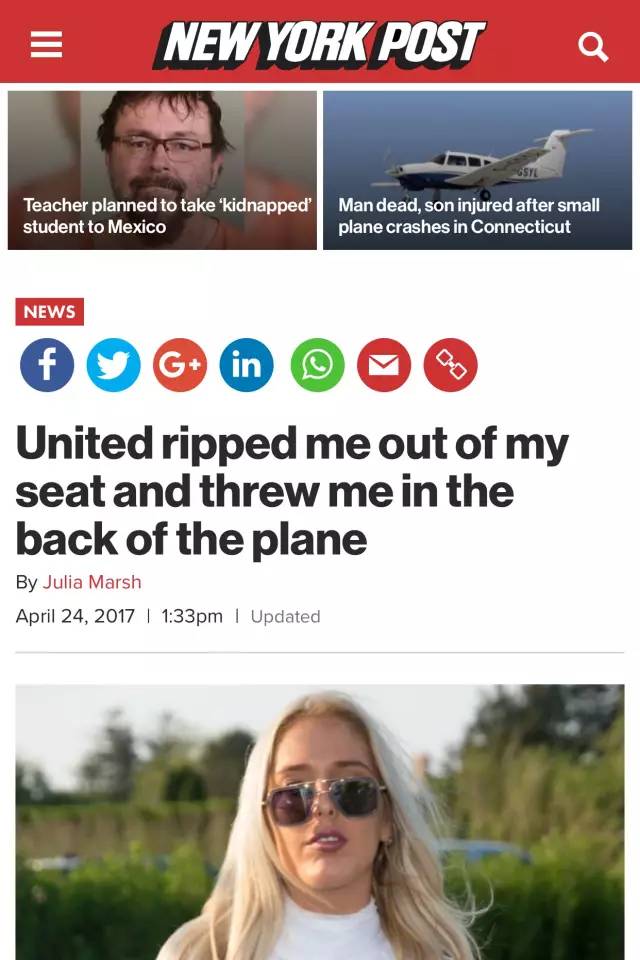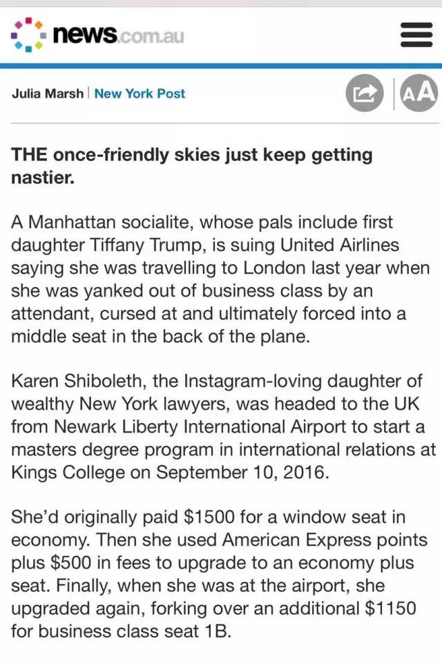 當(dāng)然,以上都是名媛方單方面的說法,但美聯(lián)航就這件事回答記者說,因?yàn)榘讣趯徖碇?,不做任何回?yīng),所以事實(shí)真相現(xiàn)在也無法確定。