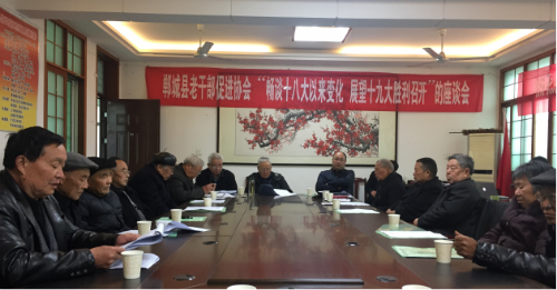 2017年,老干部促進協(xié)會決定通過采取座談訪談、調研建言、網(wǎng)評熱議、參觀考察、家風傳承、文藝創(chuàng)作、典型宣講、節(jié)慶活動等形式,在全市廣大離退休干部中開展“暢談十八大以來變化,展望十九大勝利召開”的活動,積極推進“不忘初心葆本色·中原出彩我點贊”活動。鄲城縣老同志們在思想政治建設、輿論宣傳領導、優(yōu)良傳統(tǒng)傳承、社會風氣凈化等方面積極發(fā)聲,積聚正能量、傳遞正能量,充分表達對堅持黨的領導和走中國特色社會主義道路的堅定信心,充分展示他們不忘革命初心、永葆政治本色的可貴品質,充分釋放他們對黨無限忠誠的深厚感情,積極為黨的事業(yè)發(fā)展點贊加油,為十九大勝利召開營造良好氛圍。