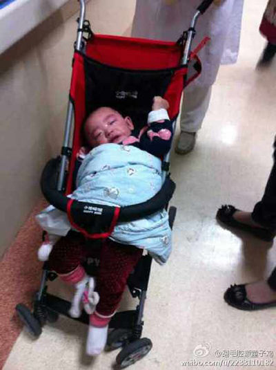 上海市中西醫(yī)結合醫(yī)院兒科主任沈朝斌介紹,從入院體檢來看,女嬰表現(xiàn)出生長發(fā)育功能的障礙。女嬰已16個月大,但不能獨立坐住,也無法扶墻直立。從女嬰四肢的活動、肌張力的改變以及她動作發(fā)育的遲緩,綜合判斷考慮可以診斷為腦性癱瘓,而且是遲緩性癱瘓。女嬰今后的生活自理能力較差,但可以通過長期的康復訓練來改善其生長發(fā)育和肌體功能。
