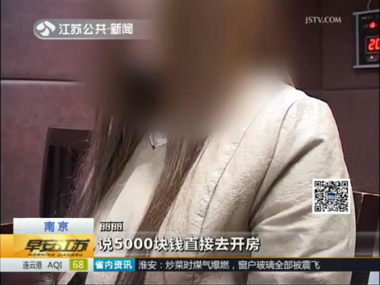 女子自稱(chēng)叫麗麗,山東人,最近來(lái)南京旅游。無(wú)聊時(shí)在陌陌上認(rèn)識(shí)了一名男子,男子稱(chēng)5000元直接去開(kāi)房,麗麗答應(yīng)了。