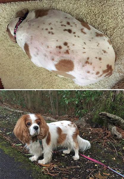 阿比之前總是暴飲暴食,而且也不鍛煉。久而久之,它變得越來越胖,每走一步都要停下來喘喘氣,因此只能坐在小推車里被人推著走。2016年5月,阿比主人的鄰居很擔心它的健康情況,于是聯(lián)系了當?shù)氐膶櫸锞仍行?。該中心的工作人員與阿比的主人 溝通后,順利把它帶去了中心幫它減肥。