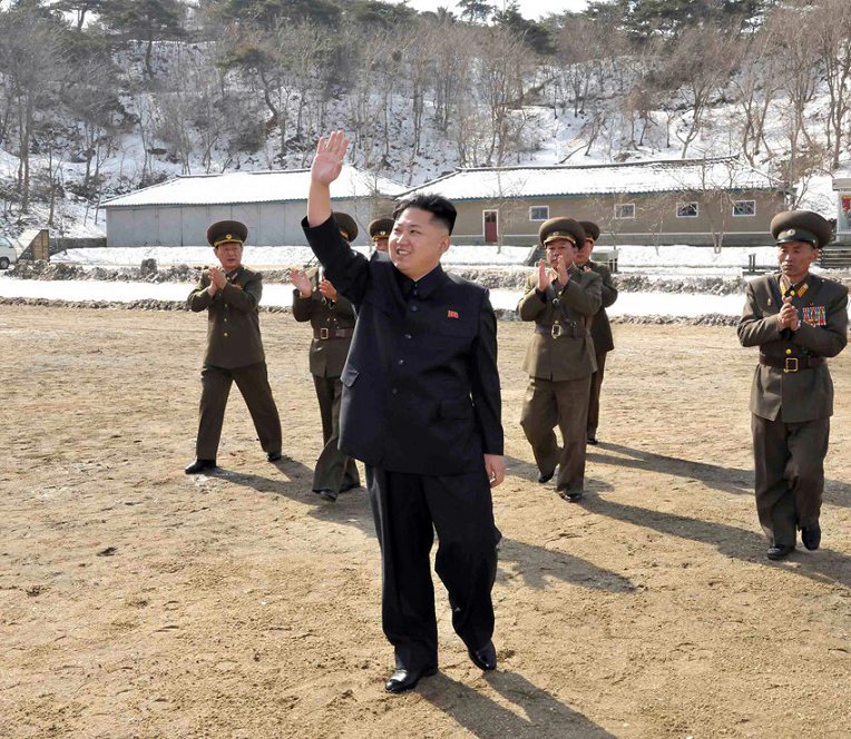 這張朝鮮中央通訊社2012年4月5日提供的照片顯示,朝鮮最高領導人金正恩近日視察了駐守東部海岸前方哨所的麗島防御部隊。
