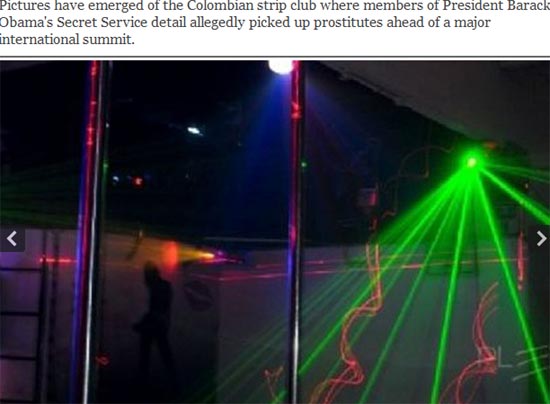 《紐約每日新聞》報(bào)道稱(chēng),美國(guó)特勤局特工曾光顧這家位于哥倫比亞卡塔赫納市的名為Pley的俱樂(lè)部,一邊豪飲啤酒和威士忌酒,一邊看著舞臺(tái)上的女子跳鋼管舞,并從中選擇過(guò)夜床伴。許多特工都會(huì)帶著妓女返回下榻的卡里比酒店(Hotel Caribe),該酒店是美國(guó)特勤局、軍方以及美國(guó)記者常駐之地。