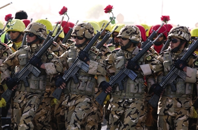 4月17日,德黑蘭,伊朗士兵參加閱兵儀式。當(dāng)日,伊朗多個(gè)城市舉行盛大閱兵。