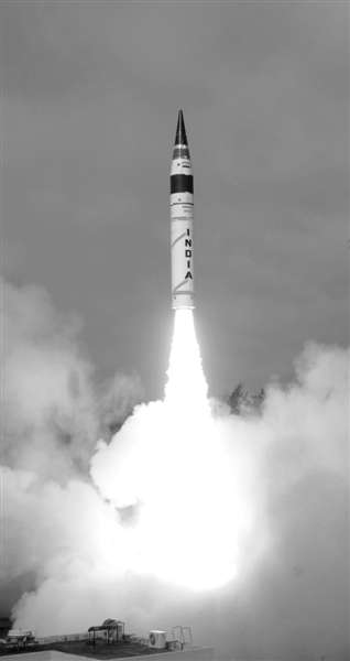 當?shù)貢r間19日8時7分(北京時間10時37分),印度從東部惠勒島試射了自主研制的、射程超過5000公里,并可攜帶多枚核彈頭的烈火-5型中程彈道導彈。