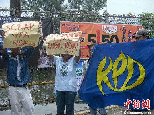 組織抗議活動的菲“全國民主運動”發(fā)布新聞稿中稱,參加抗議的民眾在蘇比克灣都市管理局大門前高舉標語,呼喊口號要求“美國潛艇立即離開蘇比克”,“立即廢除菲美《訪問部隊協議》(VFA)”。