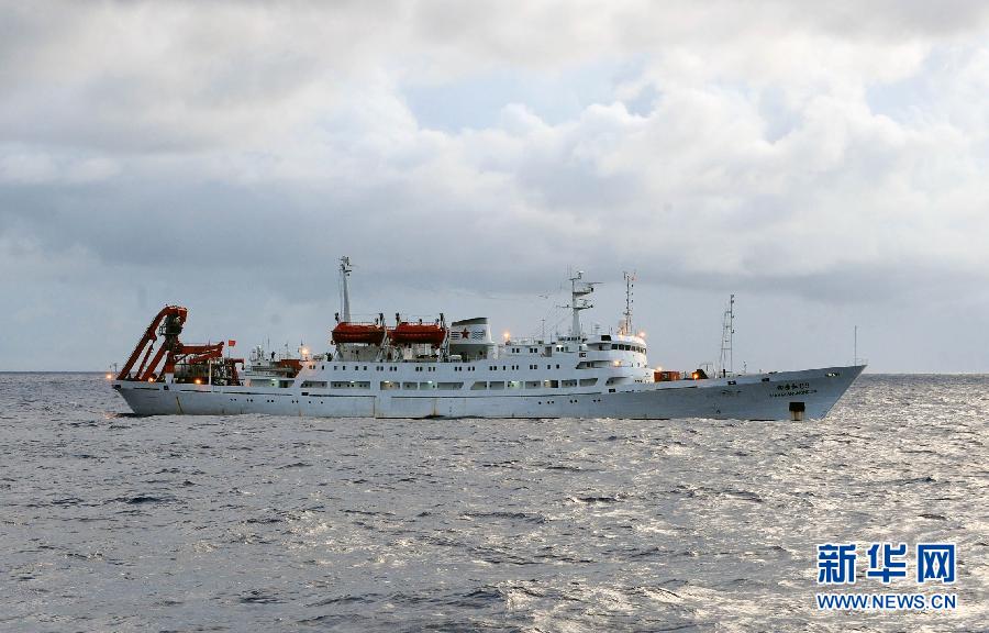 6月19日,成功完成下潛任務(wù)的“蛟龍”號(hào)母船“向陽(yáng)紅”號(hào)在海上航行。