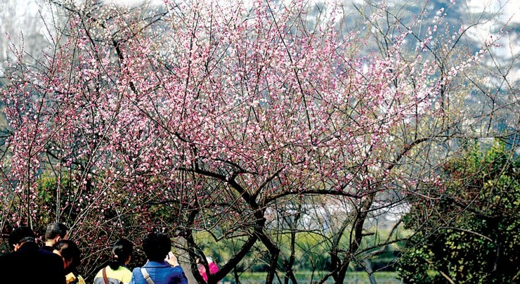 昨日,碧沙崗公園,紅梅盛開,游人爭(zhēng)相合影。 記者 張翼飛 圖