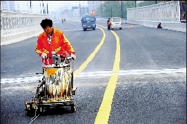 一些路段正在進(jìn)行道路標(biāo)線施工和照明安裝,市燈飾照明處工作人員告訴記者:“正在安裝的是400W的高壓鈉燈。”