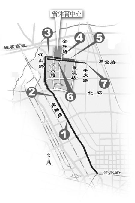 18:00至20:00,南陽(yáng)路(金水路至北環(huán)立交段)、江山路(北環(huán)立交至三全路段),只允許機(jī)動(dòng)車(chē)由南向北行駛,禁止一切機(jī)動(dòng)車(chē)(公交車(chē)除外)由北向南行駛。