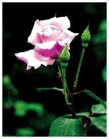 月季 小葉少,3~5片,但小葉較大,長(zhǎng)2.5~6.0厘米。葉面較平,不凹陷,無(wú)皺紋。枝直立 ,刺少, 新枝的枝端都有花。