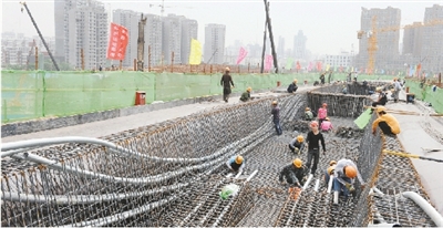 昨日,記者從鄭州城建集團西三環(huán)航海路立交橋建設項目指揮部了解到,由于參加施工的各單位日夜不停加緊施工,目前樁基累計完成927根,占總量的93%;承臺累計完成167個,占總量的73%;墩柱累計完成99個,占總量的44%。主線橋箱梁進入部分鋼筋綁扎、模板支設和底腹板模板搭設階段,工程已完成總量的35%。預計8月可完成主體施工,年底實現(xiàn)通車。 本報記者 許大橋 攝