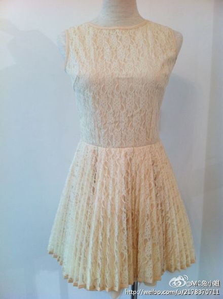 做工超級(jí)精美的蕾絲連衣裙,裙擺也是今年流行的百褶款。亮點(diǎn)是背部,大大的V型露背款啊,一定是身材好的MM才能hold得住!