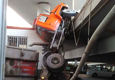 貨車“耍雜技” 掉下立交橋