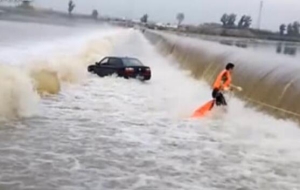 轎車被困漫水橋 眾人來(lái)救援