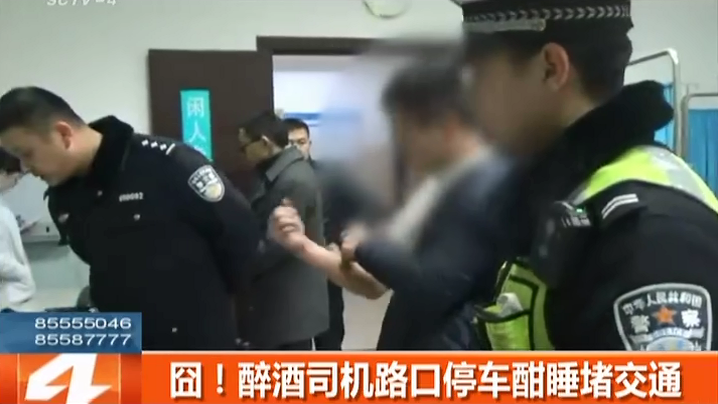 醉酒司機(jī)路口停車酣睡堵交通