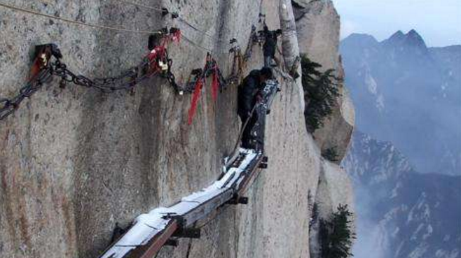 • 華山長(zhǎng)空棧道上“最危險(xiǎn)的掃雪人”
