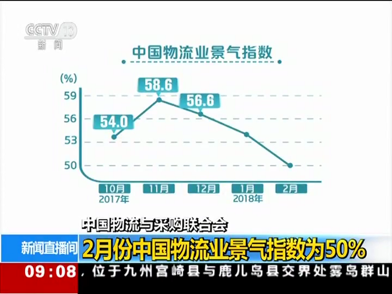 2月中國物流業(yè)景氣指數(shù)為50%