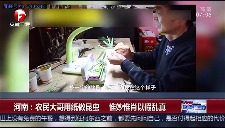 農(nóng)民大哥用紙做昆蟲 惟妙惟肖