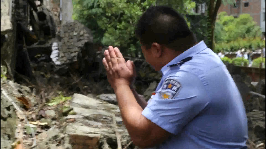 地震十周年祭:志愿者在廢墟前跪拜曾親手掩埋的遇難者