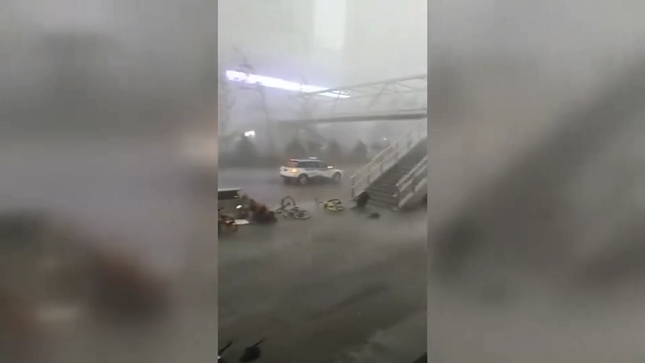 太原狂風暴雨 一女子被風吹倒從天橋樓梯滾落