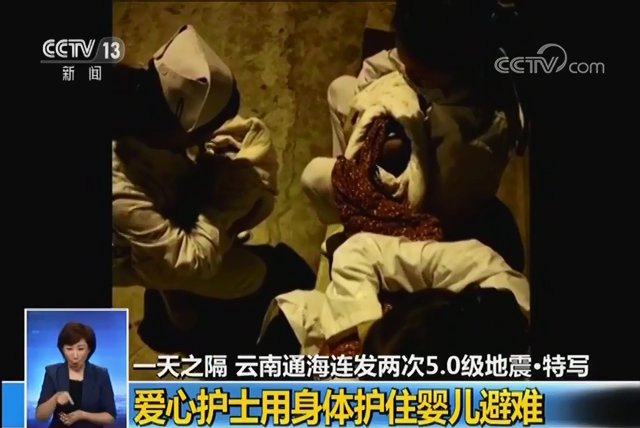 一天之隔 云南通海連發(fā)兩次5.0級地震·特寫 愛心護士用身體護住嬰兒避難