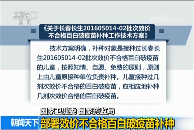 國家衛(wèi)健委 國家藥監(jiān)局 部署效價不合格百白破疫苗補種