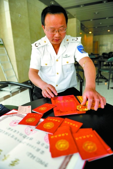 雖說他熱衷于為大河報(bào)提供新聞線索,但提起自己的獻(xiàn)血經(jīng)歷卻不想多說。在記者的反復(fù)詢問下,李四信說,他于2002年1月開始第一次獻(xiàn)血。當(dāng)時(shí),他與朋友在二七廣場(chǎng)附近游玩時(shí)看到一輛采血車,出于好奇就去獻(xiàn)了400毫升全血,因?yàn)槭呛檬?,獻(xiàn)過后自己很開心。從那以后,自己對(duì)獻(xiàn)血便“上了癮”,剛開始按獻(xiàn)全血的規(guī)定,每隔半年獻(xiàn)一次,一次400毫升;后感覺獻(xiàn)全血隔的時(shí)間有點(diǎn)長(zhǎng),就開始獻(xiàn)成分血,一個(gè)月就可以獻(xiàn)一次。其間,他獲得過鄭州市紅十字會(huì)、中國(guó)紅十字會(huì)總會(huì)等多個(gè)部門頒發(fā)的獻(xiàn)血榮譽(yù)證書。