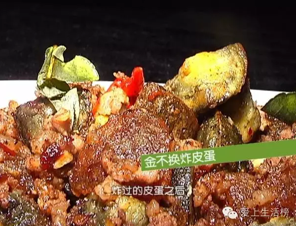 經(jīng)過炸制的皮蛋外酥里嫩,肉末讓這道菜更加扎實,但最特別的還是這獨特的配料檸檬葉。