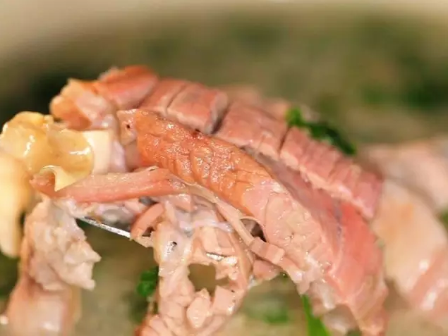 而經(jīng)過腌制再煮的羊肉紅里透白