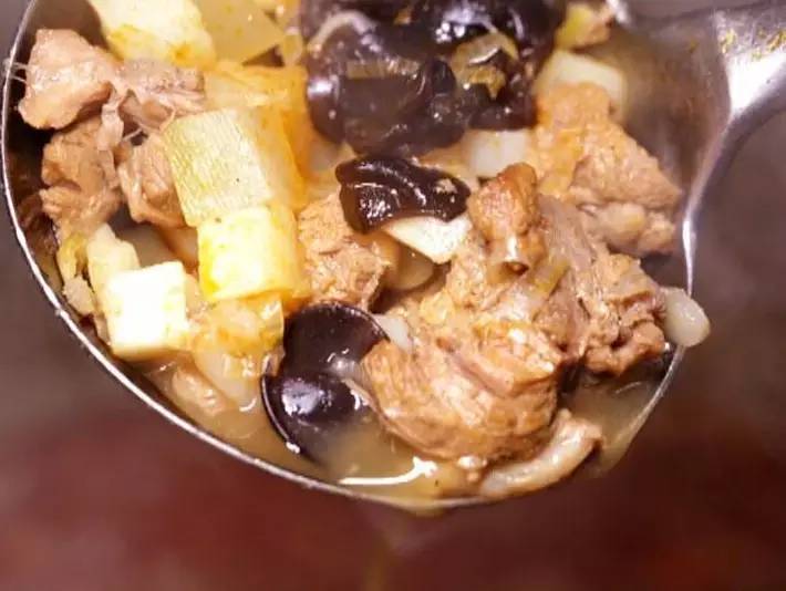 喝上一口湯咸香厚重,沒有什么酸味,微微的辣味卻打開了味蕾。羊肉香爛入味,配著軟筋的面條、面面的土豆塊和滑溜的小木耳,口感很豐富。骨頭湯香氣醇厚,一直縈繞在嘴巴里。