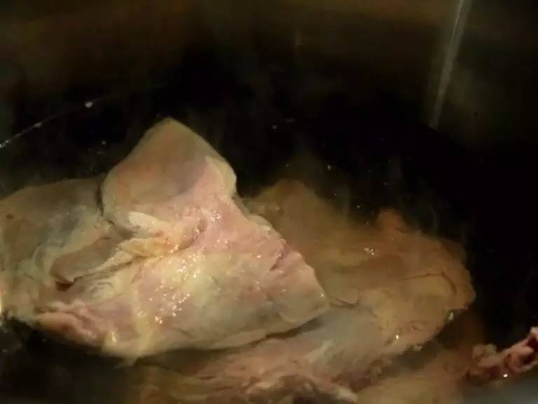 湯鍋中加入冷水,將骨頭下入鍋內,等水快燒開時撇去浮沫,再下入鹽、還有由八角、茴香等十多種大料組成的秘制料粉。