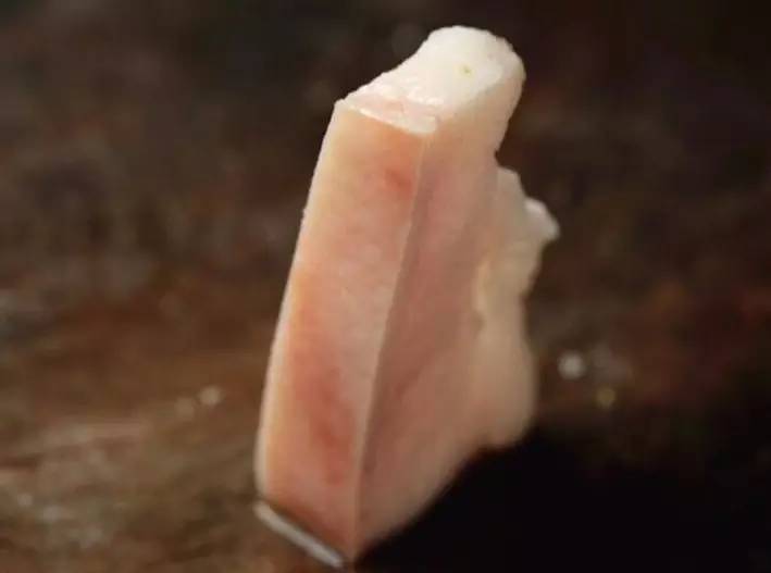 與常見(jiàn)的肥肉不同,黑豬肉肉質(zhì)十分緊實(shí),隨手切下來(lái)一塊放在桌子上就能直立起來(lái)不會(huì)塌架的。肉皮十分緊致,用手怎么捏都不會(huì)變形。